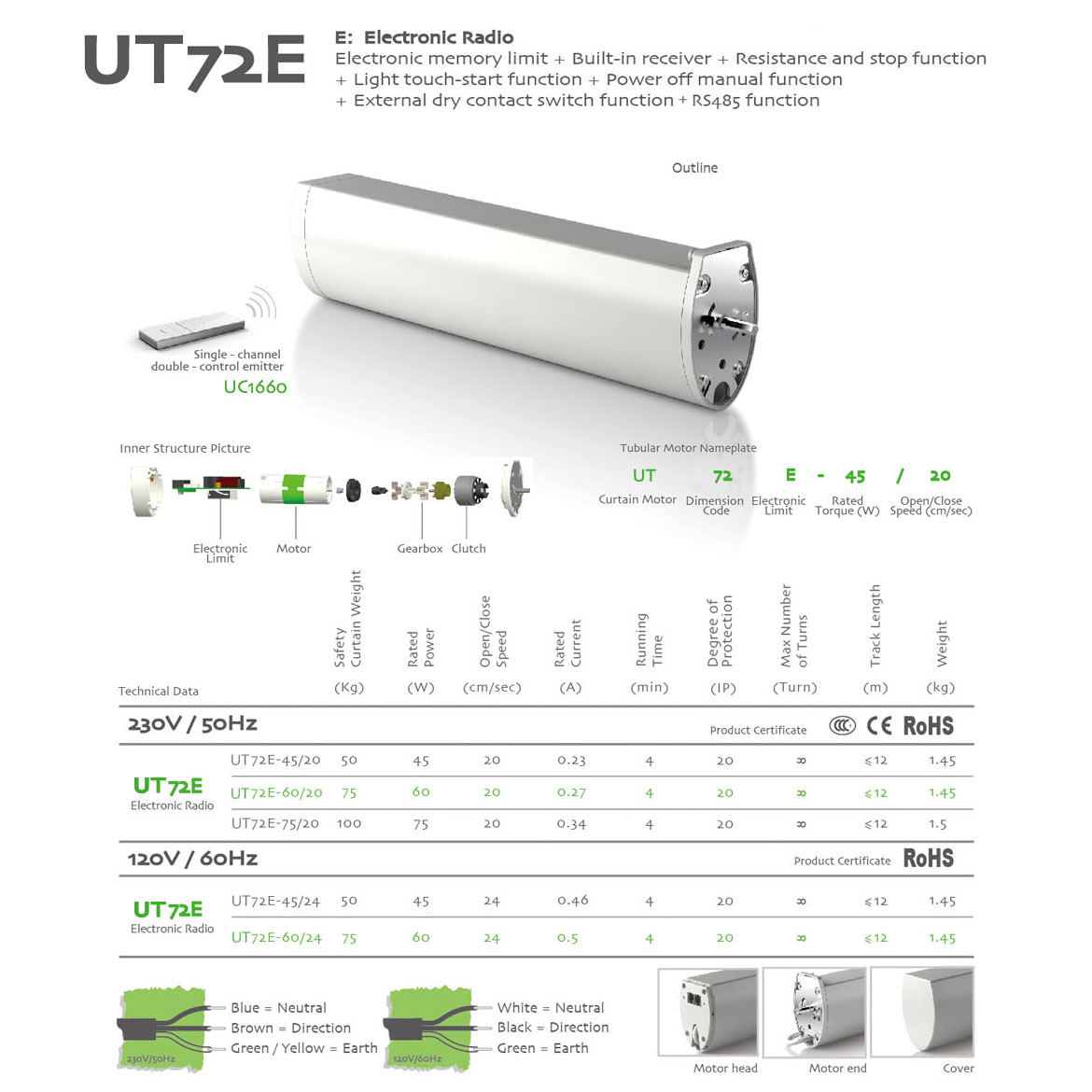 electric curtains:Memorized Limit+Integrated Radio Control+Obstruction Detection+Light touch-start+Manual Override+The third limit position+Compatible with dry contact switch function.