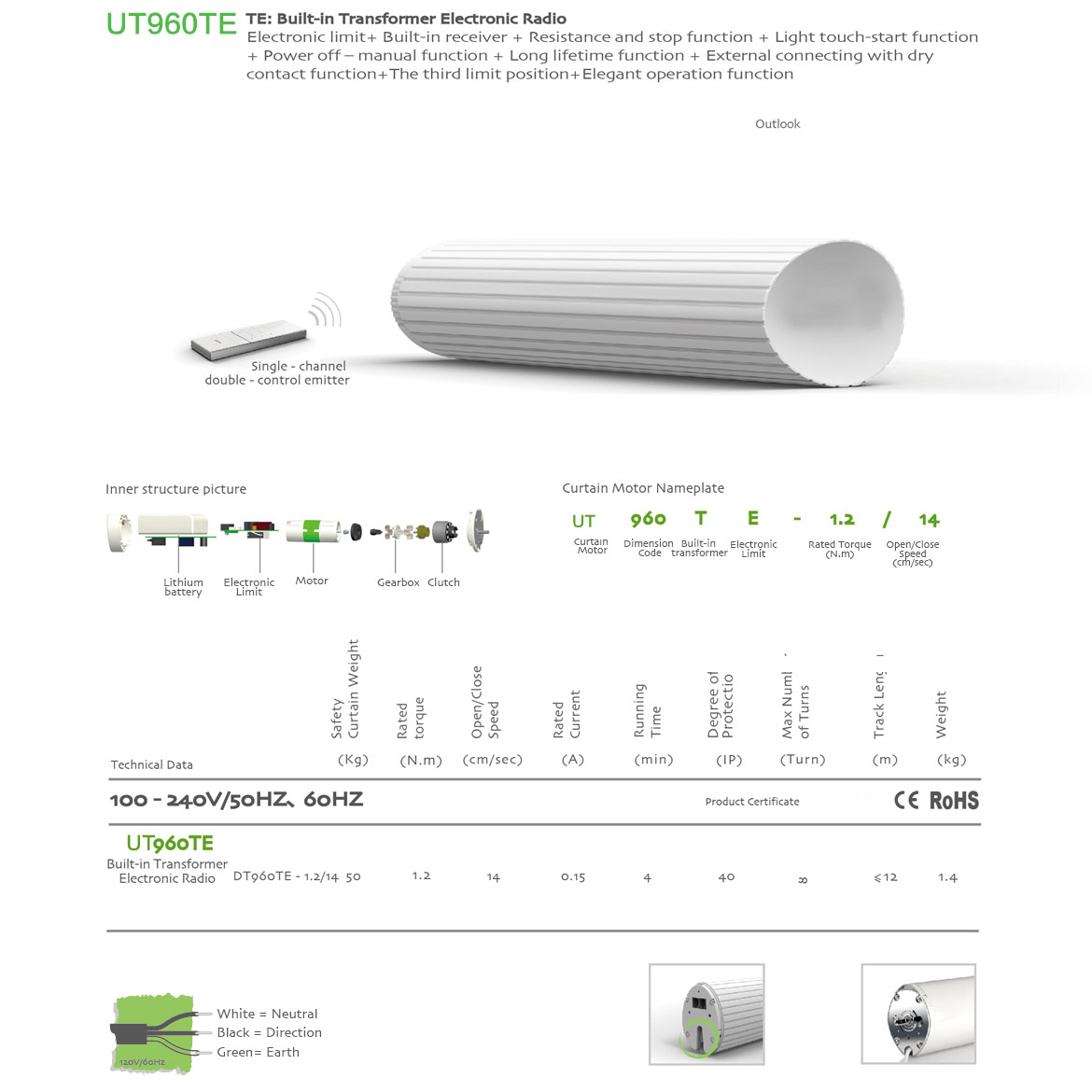 fold curtain:Built-in Transformer(100V-240V)+Elegant operation+Memorized Limit+Integrated Radio Control+Obstruction Detection+Light touch-start+Manual Override+The third limit position+Compatible with dry contact switch function.