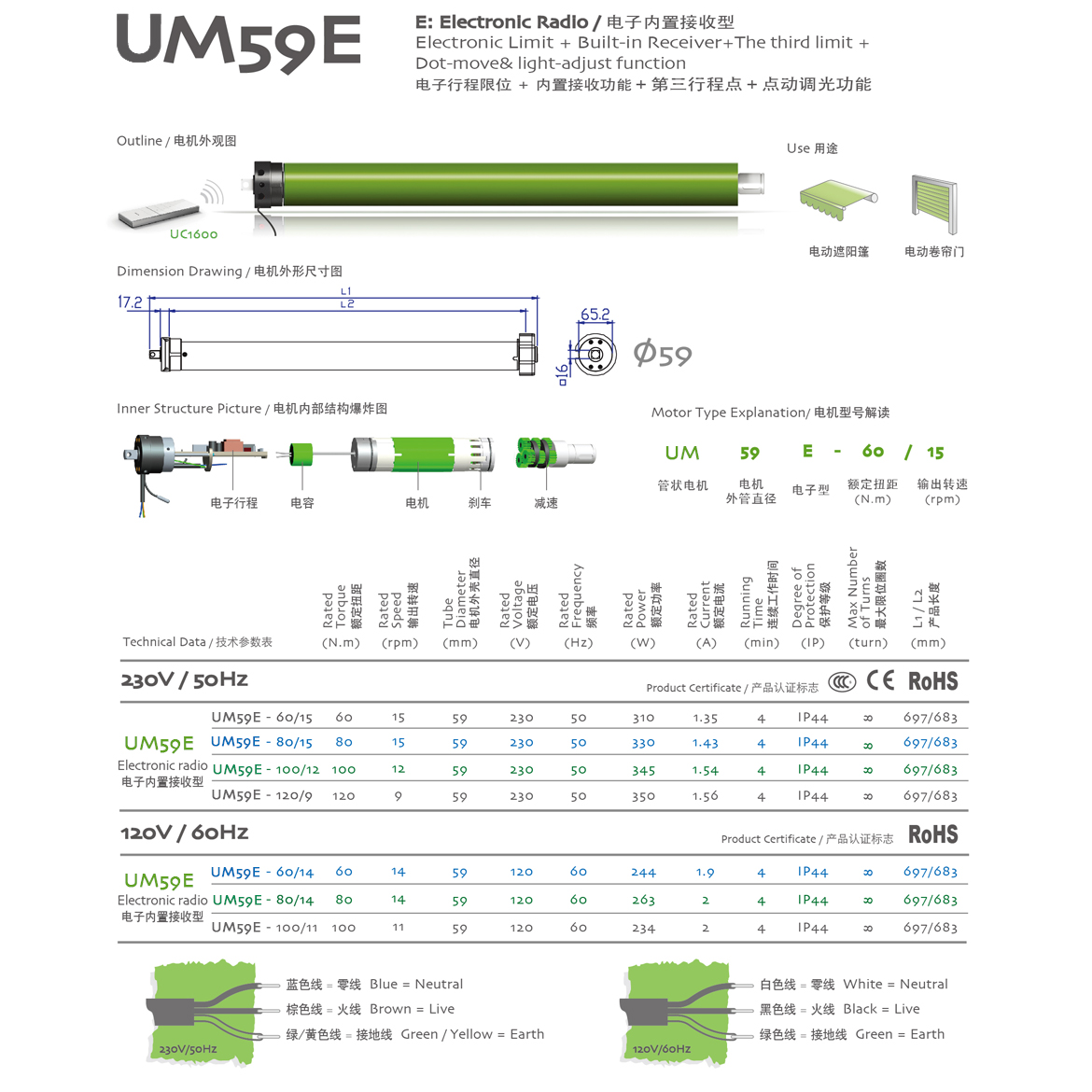 E:Electronic Radio/電子內(nèi)置接收型 電子行程限位+內(nèi)置接收器+點(diǎn)動(dòng)調(diào)光功能+第三行程點(diǎn)